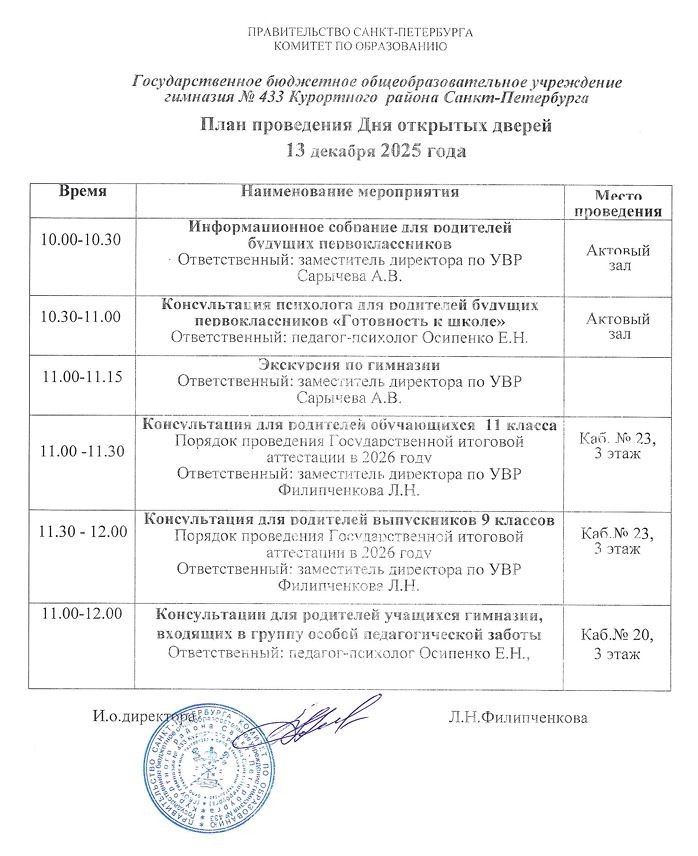 13 декабря - День открытых дверей в гимназии.