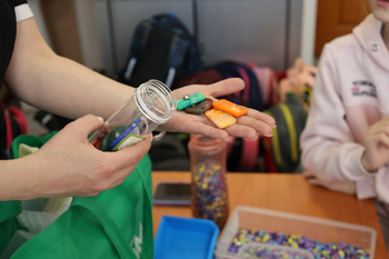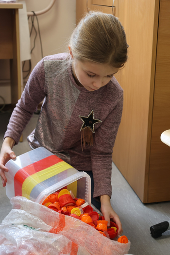 Ребята узнали о том, как происходит переработка крышечек, какие материалы в итоге получаются и куда направляются финансовые средства за собранные крышечки. Затем все вместе рассортировали крышечки по видам, цветам, и они отправились в путешествие на переработку.