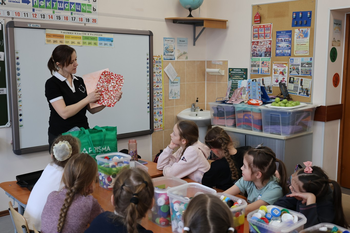 Экологический урок провела для учеников 3а класса Наталья Владимировна Семешкина, куратор "Центра развития экологических и социальных проектов "Крышечки ДоброТЫ" capsgood.ru/about/