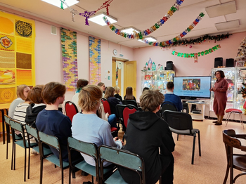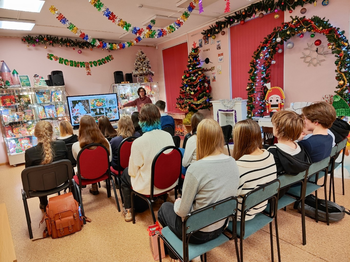 В преддверии новогодних праздников учащиеся 9 "А" класса побывали в библиотеке "Колокольчик" на лекции, посвящённой новогодним традициям.