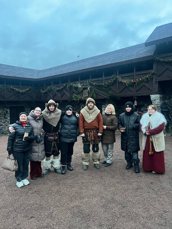Интересным новогодним событием для учеников 8а класса стала поездка в город Выборг и средневековый город Сваргас, столицу Варяжских земель. Этот городок расположен в южной части Карелии, на берегу живописного озера. Поселение точно копирует атмосферу и архитектуру княжеских усадеб первых десятилетий XI века. Ребята перенеслись на 1000 лет назад. О современности здесь ничего не напоминает, постройки стоят таким образом, что даже с их крыш не видно ничего, чтобы вернуло бы нас в мир цифровых технологий, электричества и других благ цивилизации.