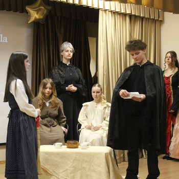19 декабря учащиеся 9а класса под руководством учителя английского языка Орловой Татьяны Николаевны представили спектакль на английском языке в одном действии по мотивам сказки Божены Немцовой "Три орешка для Золушки".
