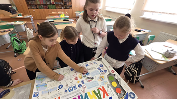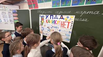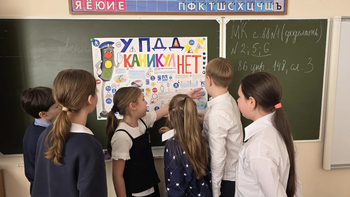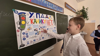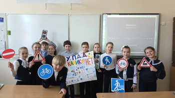 Этот плакат стал настоящим центром притяжения для учеников начальной школы. Ребята с большим интересом вспоминали дорожные знаки, повторяли основные правила для пешеходов и велосипедистов.