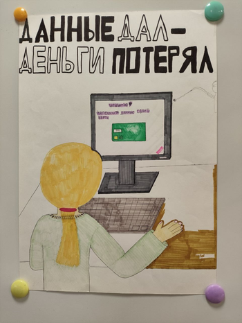 Ребята разработали информативные плакаты, на которых представлены виды мошенничества и полезные советы по защите личных финансов.
